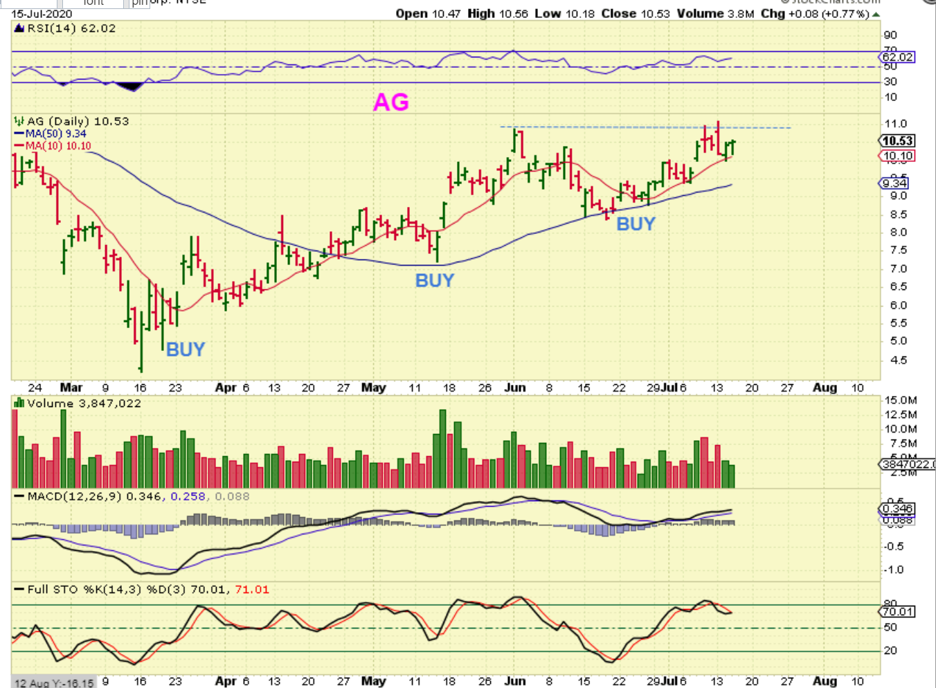 AG formed a cup and is simply in an uptrend. If we are due for a dcl in the next week or 2, it can just form a handle, or as an individual stock, it can just continue higher.