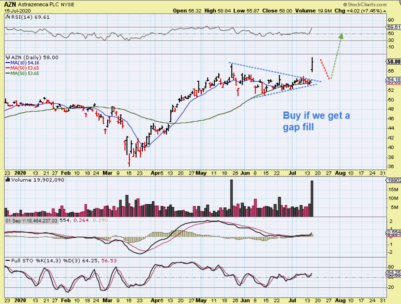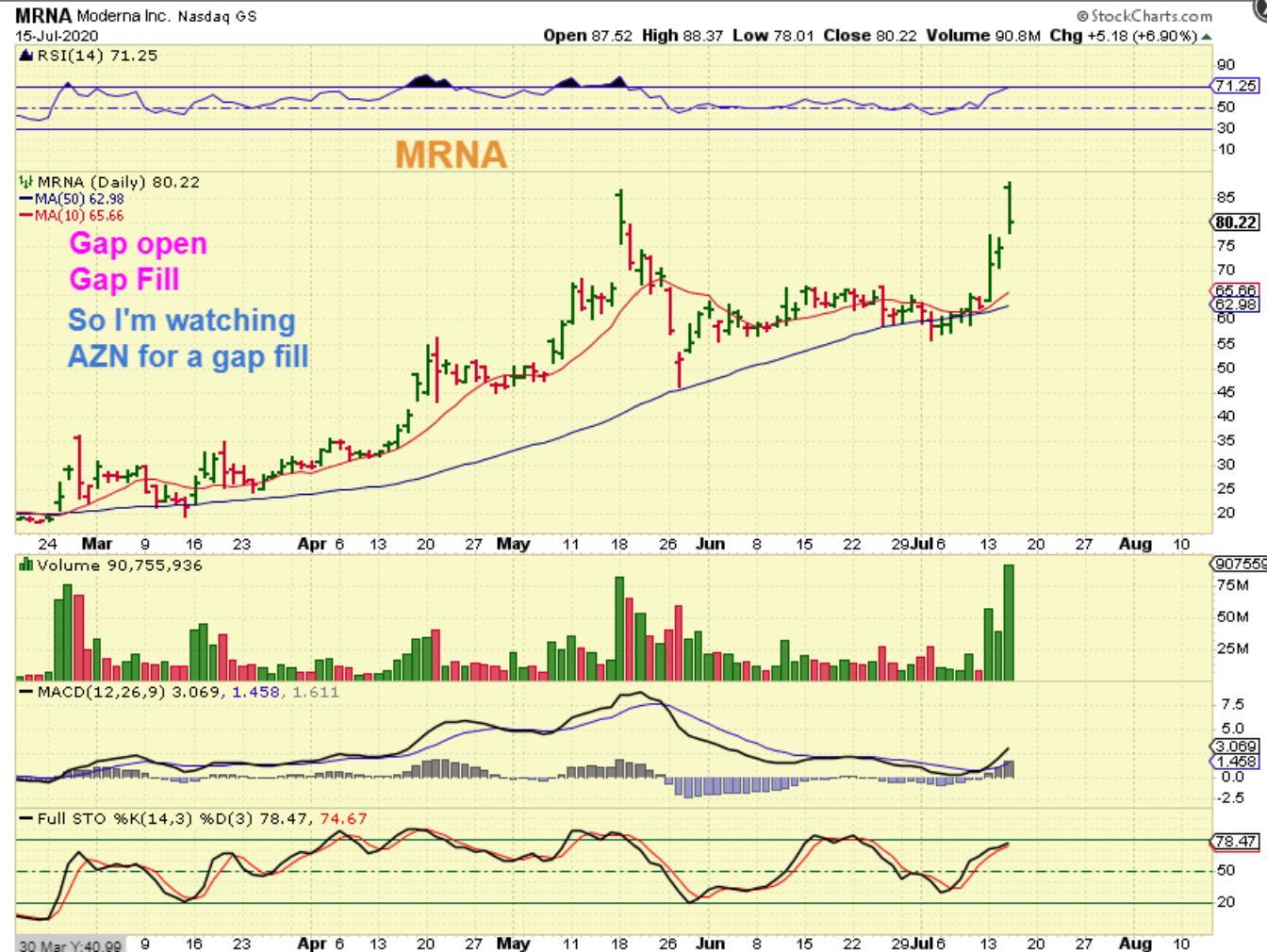 MRNA gapped open 16% and yet tried to do a gap fill. MRNA DID gap fill & start to move higher again, so there is a chance that AZN will gap fill. AZN is worth keeping an eye on (Watch list).