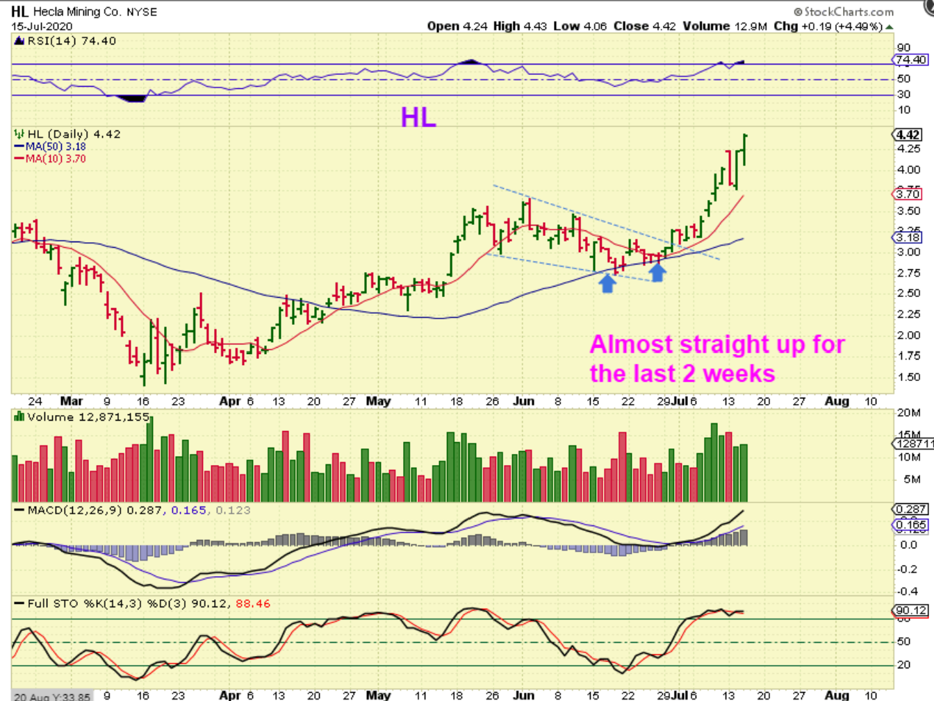 HL has been running higher over the past 2 weeks too. This was a BUY at the 50sma & also 2 weeks ago as it broke the down trend line.