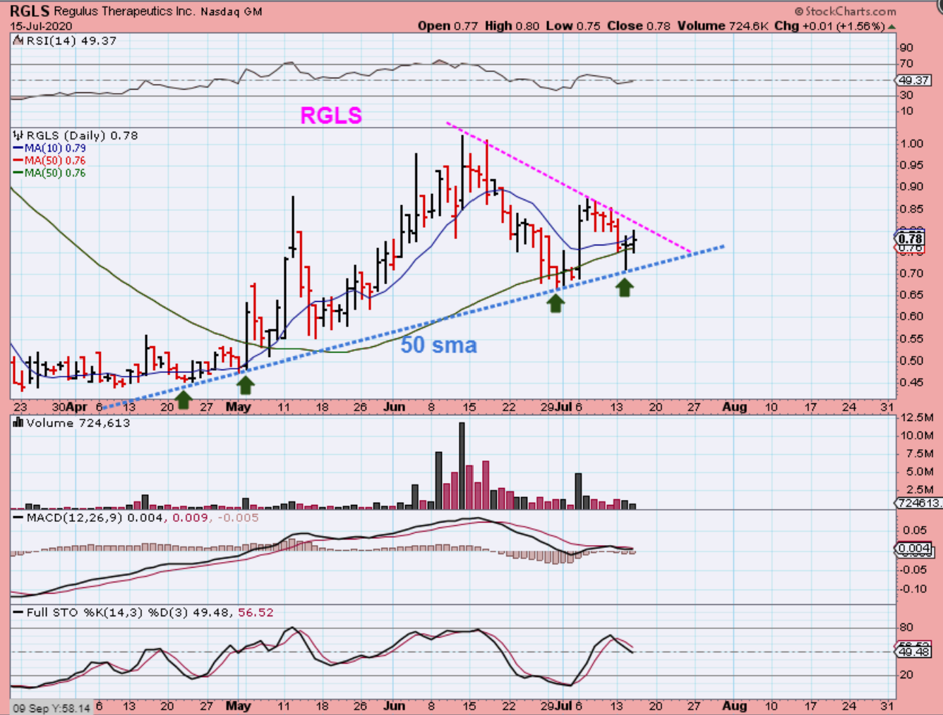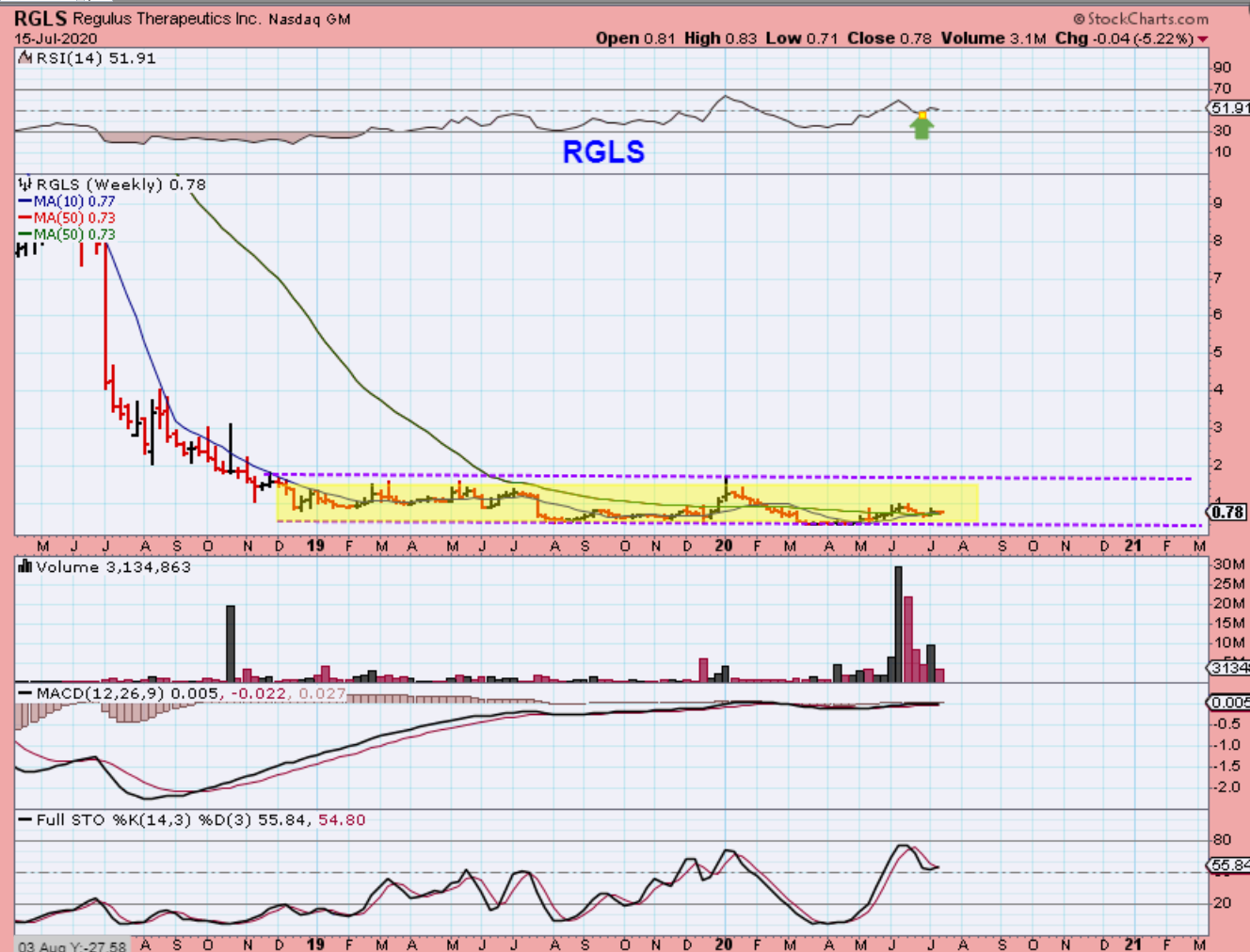 RGLS #2 is actually in a 1.5 year base and that MACD is what caught my eye when I first found this. So, we already know that it popped to $1 in June and pulled back …