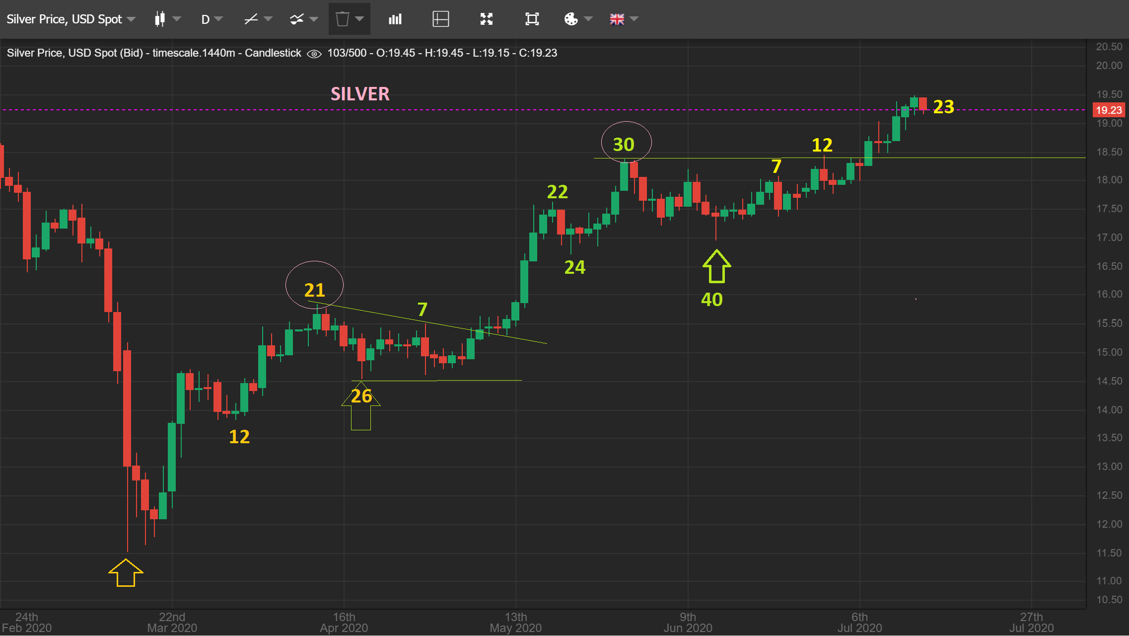 The Silver stocks are performing like a BULL RUN should, right? Well, I am going to discuss a few trades below, and the Uranium Stocks that I mentioned as a buy are looking VERY GOOD. They can put in a run similar to the Silver stocks, so if you have enjoyed those Silver stocks, you may want to enter a Uranium trade or 2.