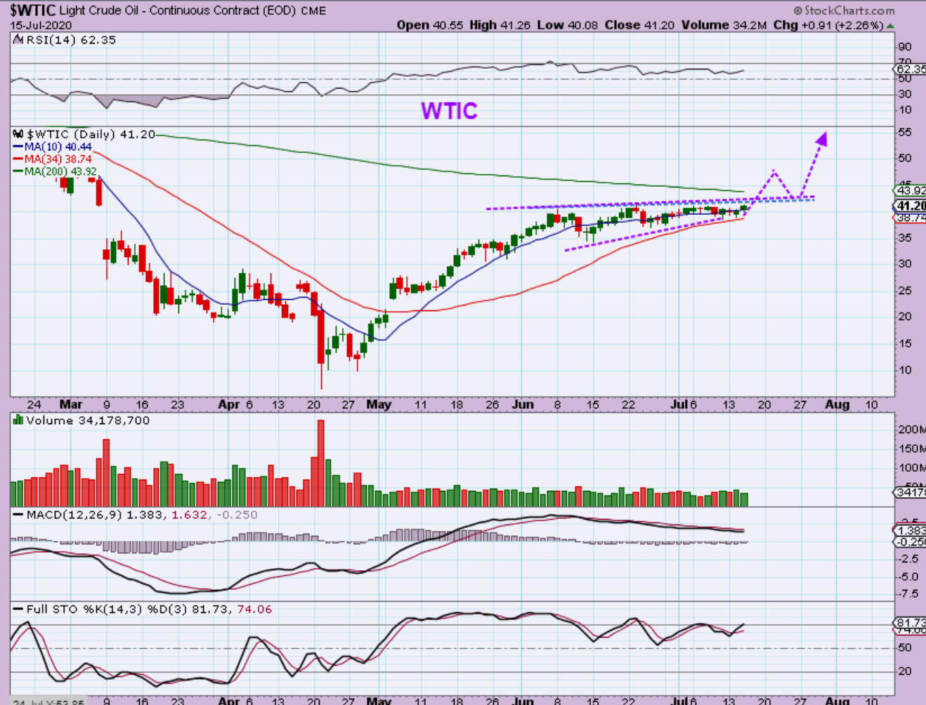 WTIC inventory was Wednesday and Oil moved $1 higher.This is a very tight pattern and if it breaks out, it should be able to burst right through that 200sma.