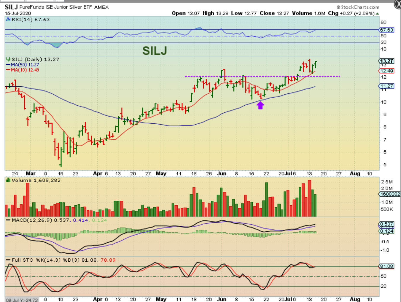 SILJ is a very similar set up as GDX & GDXJ. This is a 2 month consolidation breaking higher. So I wrote about Silver stocks yesterday…