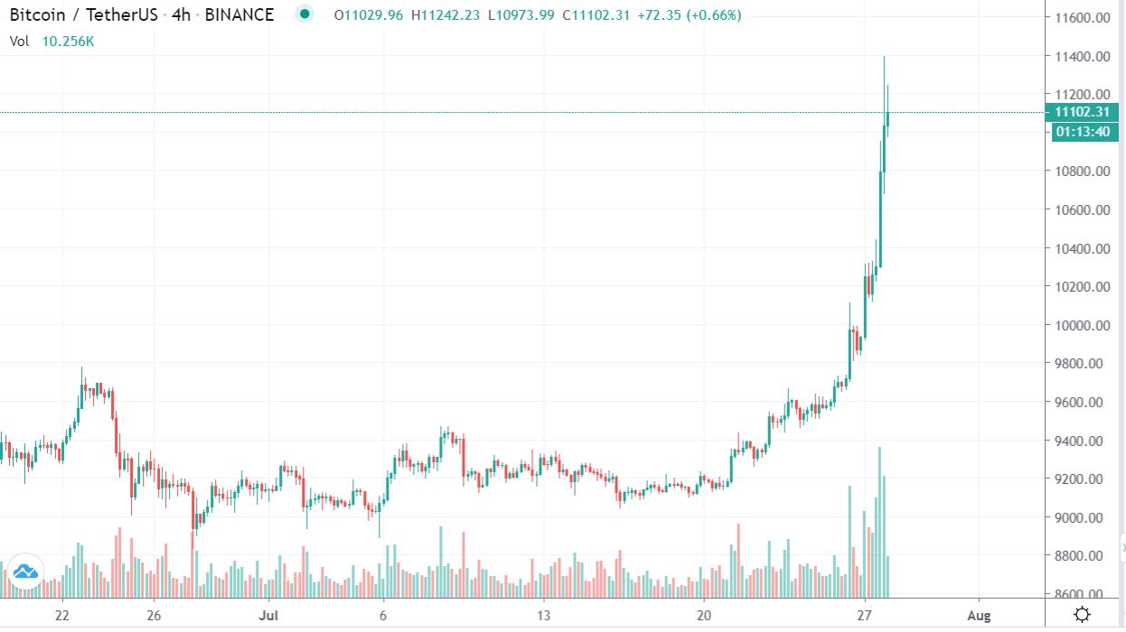 After hours Bitcoin then ramped straight up again, as seen here, and they extended gains after hrs.  This looks too extended, so maybe BITCOIN will pull back for a while and allow some entries in the blockchain stocks. We’ll see …