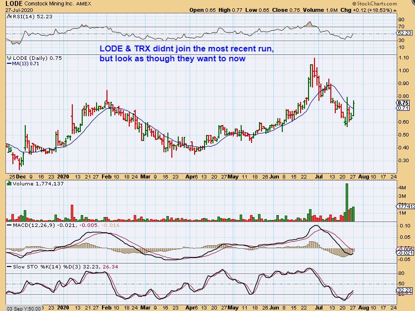 LODE – So now we saw LODE rally and sell off . IF GOLD has further to go, LODE may run back to the highs