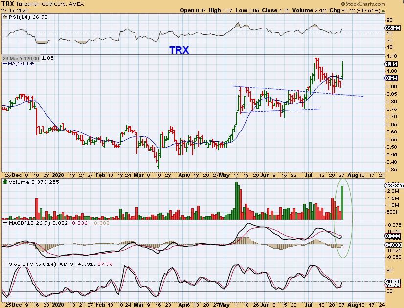 TRX was doing a back test while the others rallied. It reversed strongly Monday and IF GOLD KEEPS RUNNING,  it may break to new highs and rally too.