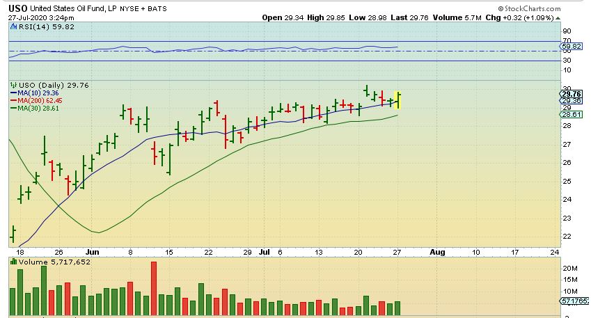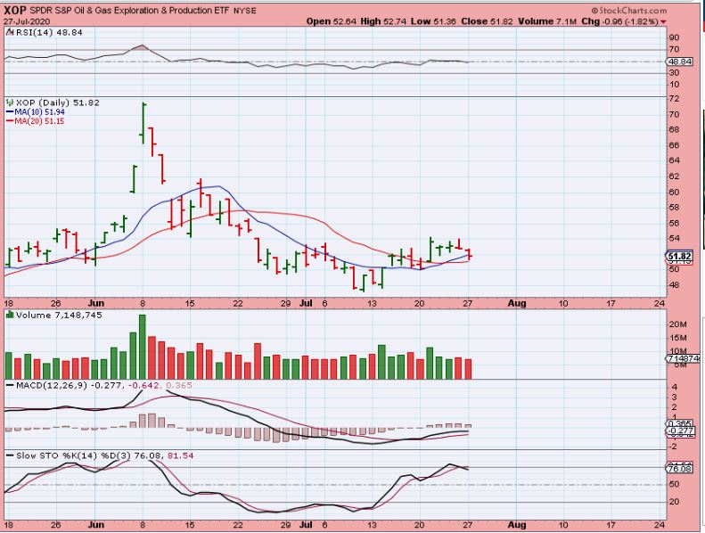 XOP – And the XOP closed down below the 10sma, yet above the 20sma. I’d say that this needs watching this week, with some energy stocks looking fine, others questionable.