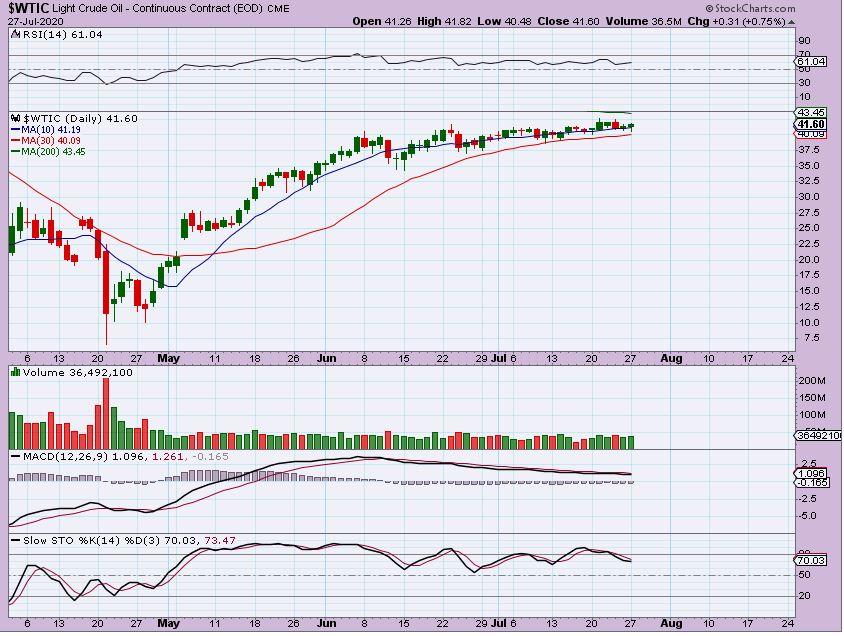 WTIC  Pushed a bit higher after a red start.  The Oil stocks started out down too, so…