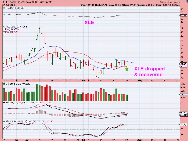 XLE – So this was the XLE Energy Fund  closing Green above support and looking fine…