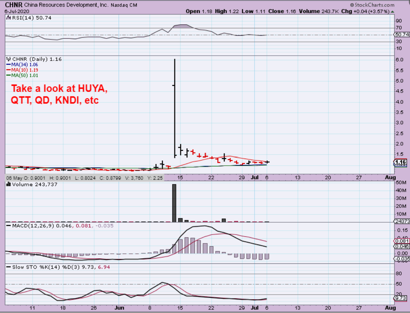 CHNR Popped Big in June, and now it is riding the 50sma. If you now take a look at the charts of the ones mentioned on this chart, you’ll see the progress that some bases are making as they move to recovery. As for CHNR? These can move big for the day trader or short term trader.
