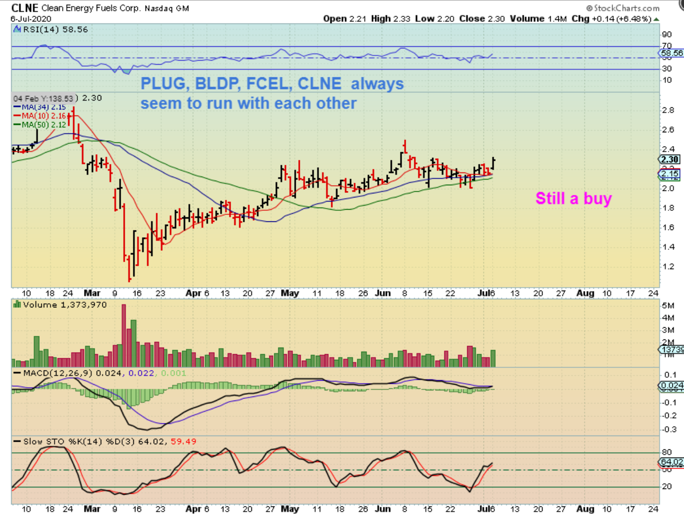 I pointed out FCELs reversal as a BUY on this chart . I said that I bought it, because when PLUG and BLDP run (and they are running!) FCEL and CLNE often run too. PLUS…