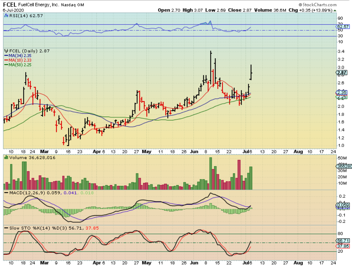 FCEL has moved from in 3 days $2.30 to $3.07 Monday, but it pulled back into the close. IF THIS FILLS THAT GAP, you may be able to add or start a position. This is a nice st up. And of course…