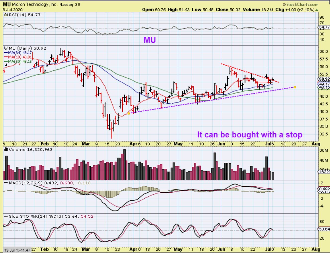 QD from June 11 – this was in a base and I mentioned that I Bought it. I know that others did too. It Popped after that , but then it dropped back to the 50 sma after I posted this chart, but remained bullish and …