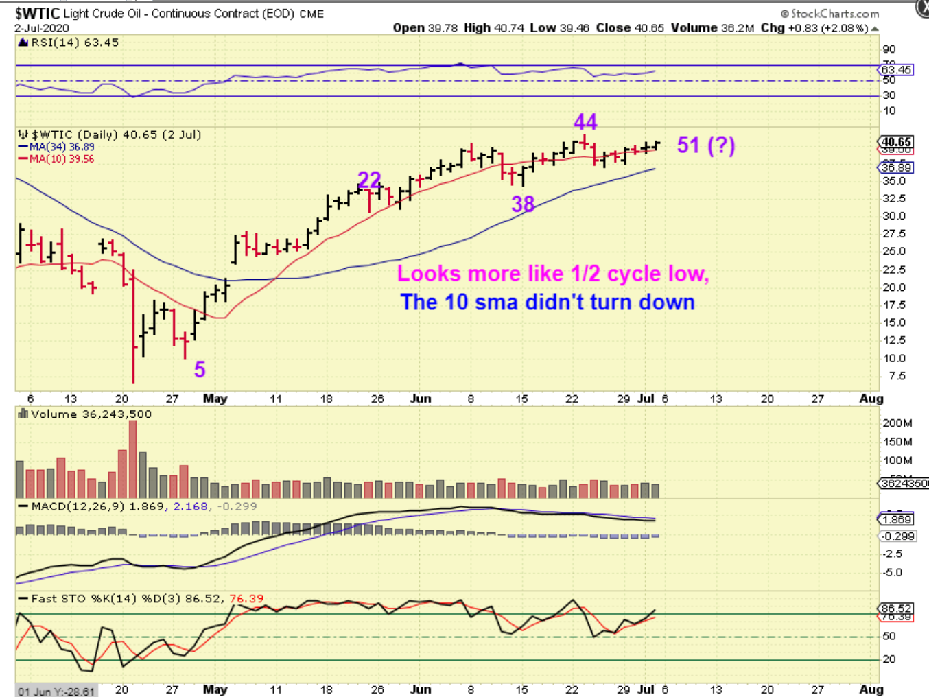 WTIC – I drew this as of Friday and Oil was down 2 cents Monday. So we should be on day 52 and still in need of a dip that LOOKS like a dcl.