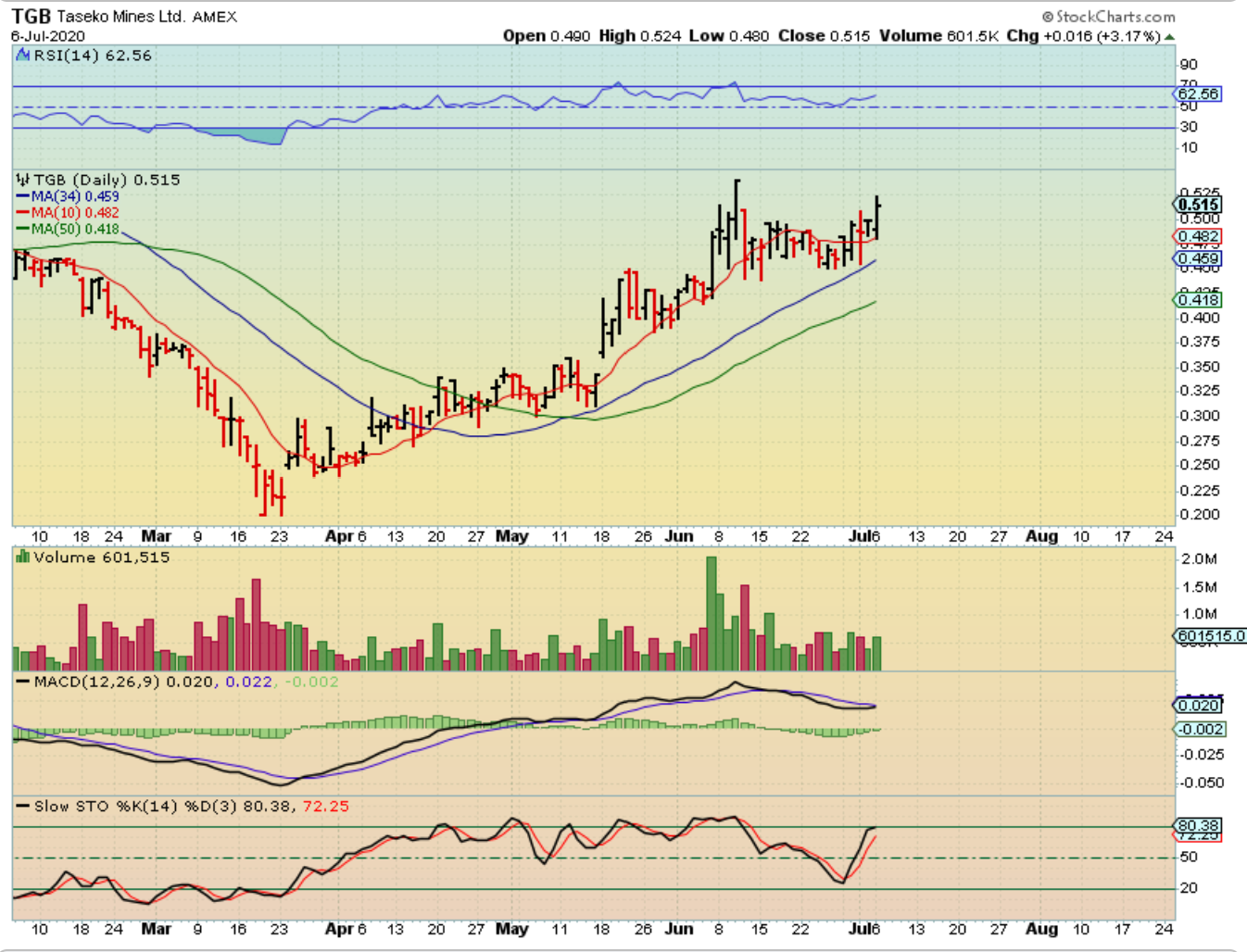 TGB & HBM may be ready to go next. TGB bounced off of the 34 sma Thursday and looks ready to break higher, and…