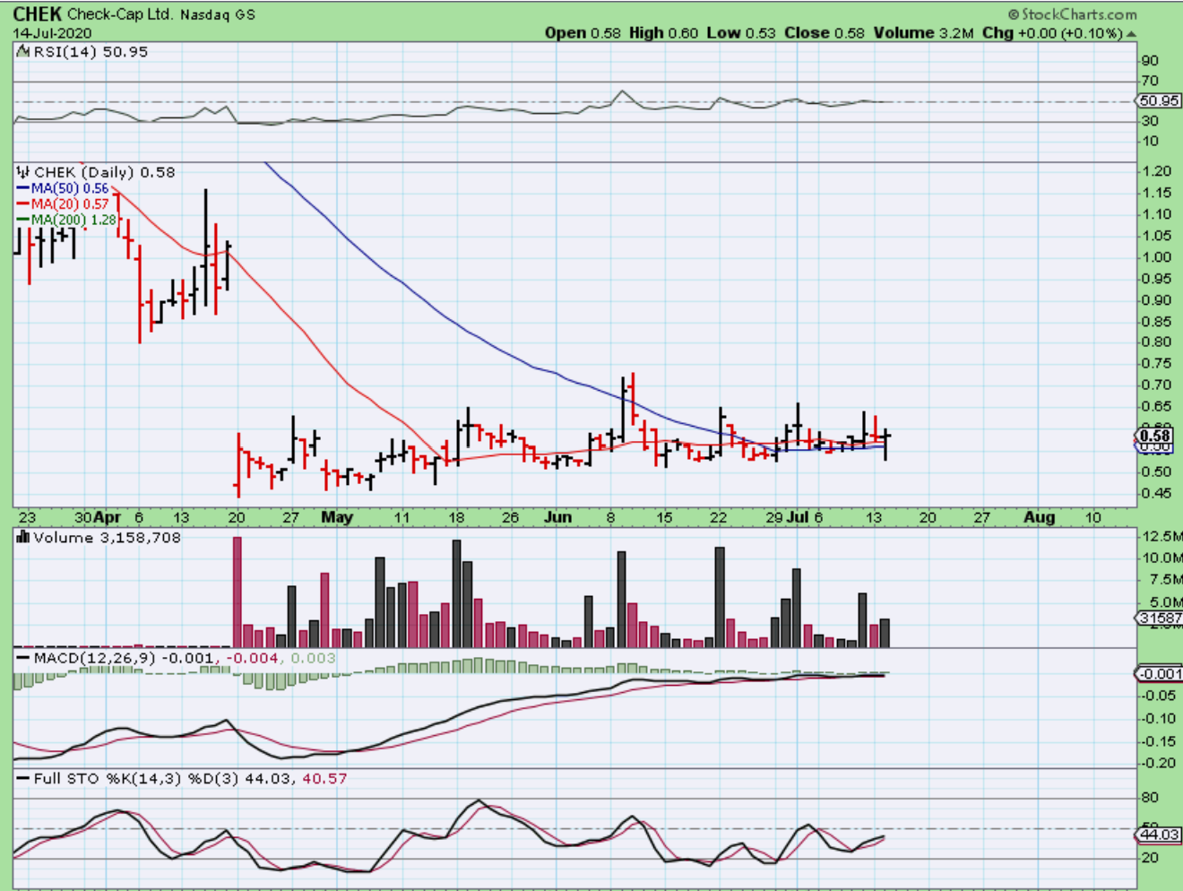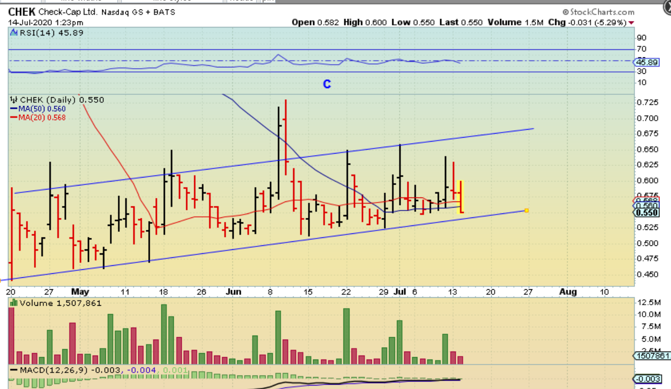 CHEK dropped well below the 50 sma to that trend line and yet bounced back by the close. That is not an easy ride as it drops 8%, but did recover and hopefully can just push higher from here.