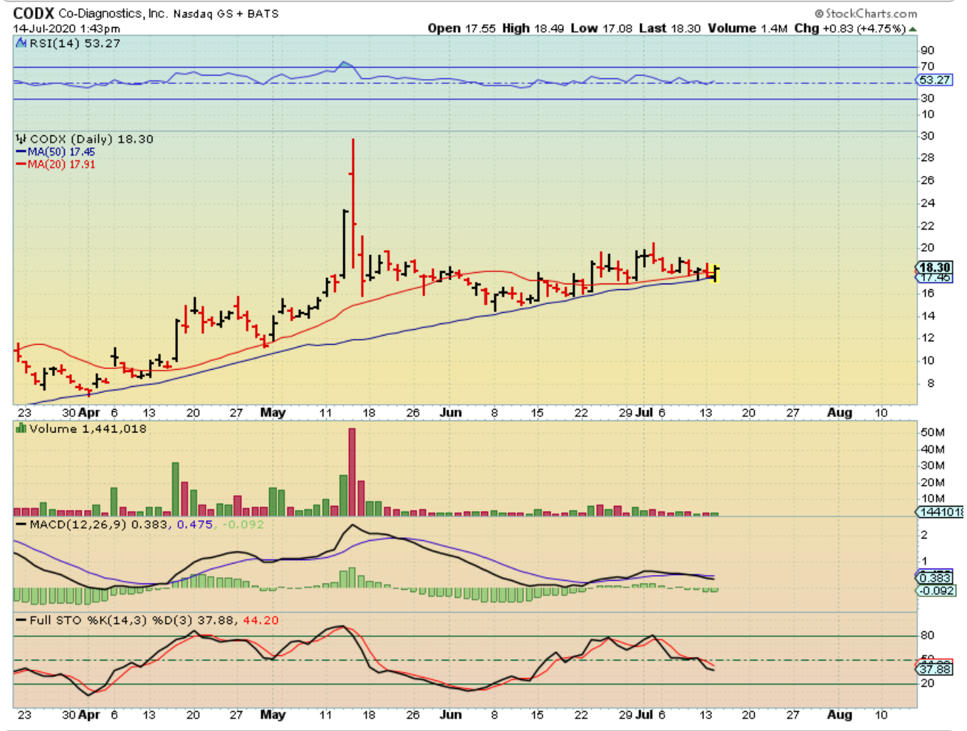 CODX – I feel that this is a low risk buy too, since you can place a stop below Tuesdays lows.