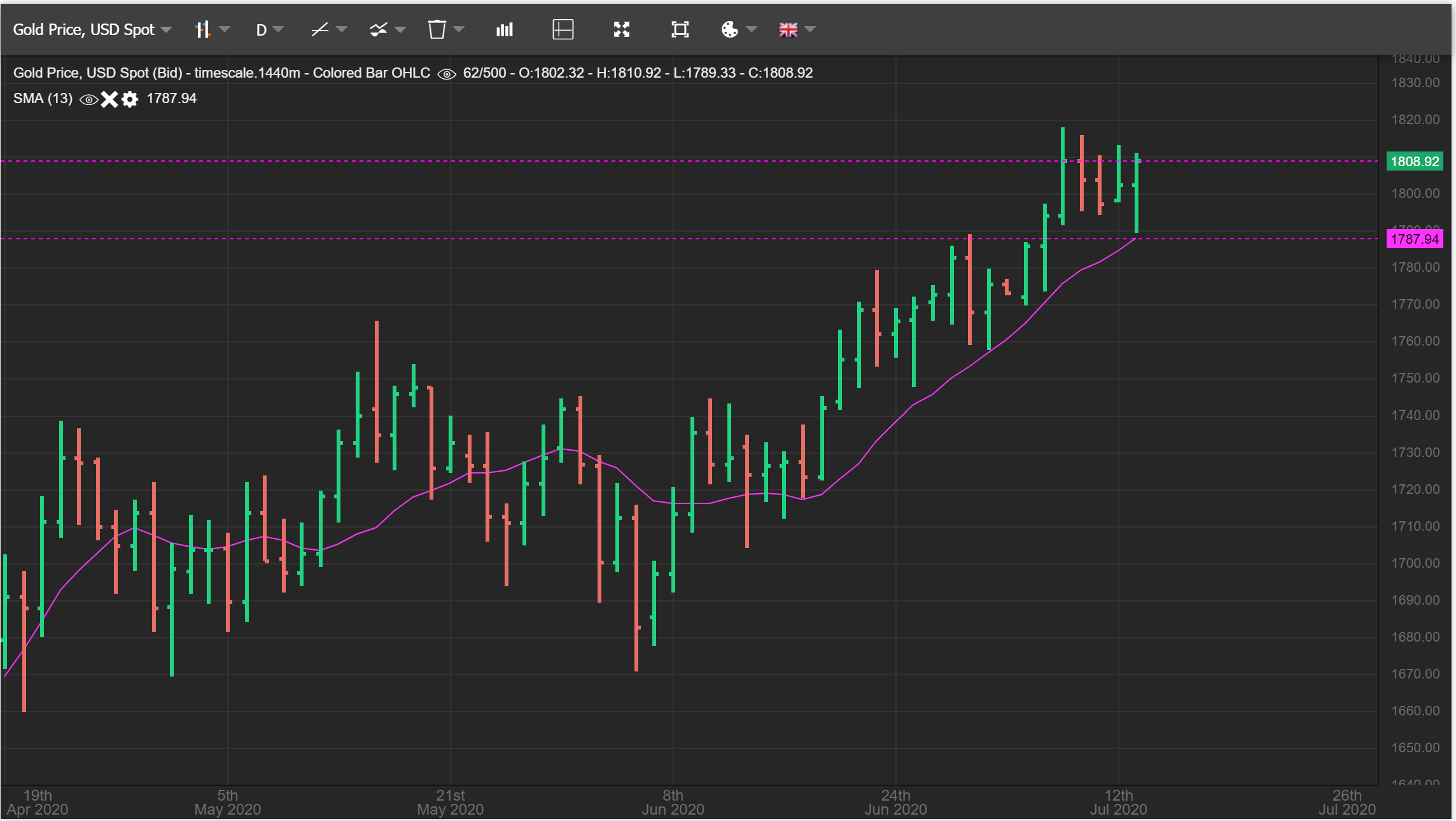 SAME CHART: This would actually be a LOW RISK buy, since your stop would be under 3 days ago low. That said, it may be best to wait for price to cross above the 10 sma.