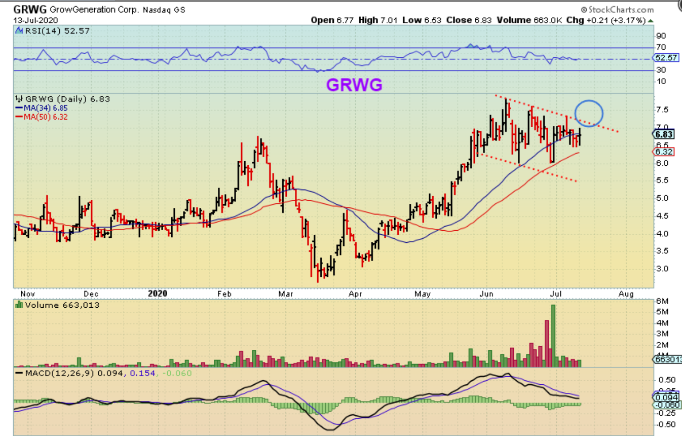 GRWG BY REQUEST IN THE A.M.: had a bullish consolidation, but it was set up to GAP OPEN a lot higher. I mentioned that I hate the gap, because they often get filled later, however…