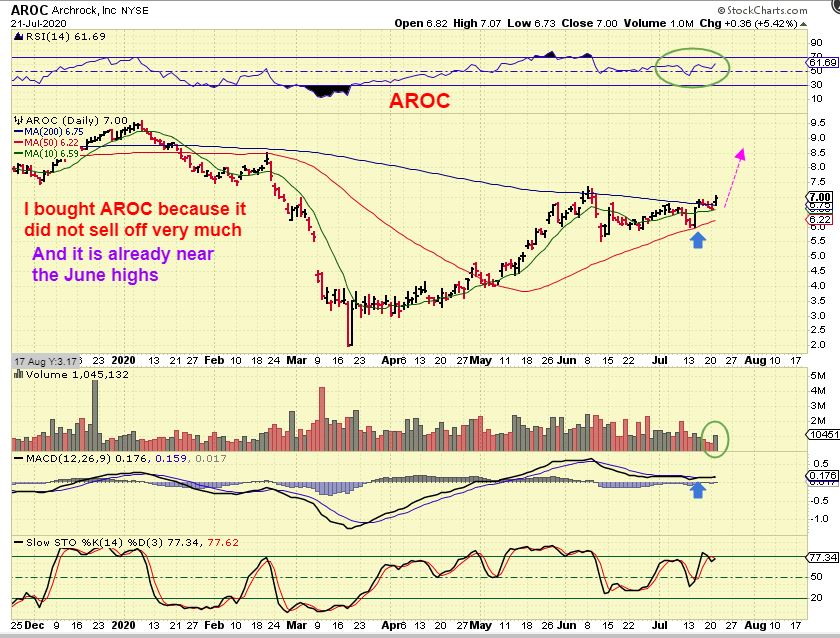 I bought AROC as a swing trade because it did not sell off much in the recent dip to a dcl and is already back near the recent June highs. This bullishly tagged the 50sma and it held as support as buyers moved in.