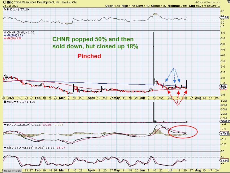 FINALLY, BY REQUEST:  I do still own CHNR and I took the money that I had in PHUN and added it to CHNR.  I like the way price is tightly pinched here between the 50 & 200sma.  It also has a very long base. I’m going to try to just hold this position and ignore it for a while (unless it breaks below the 50sma).