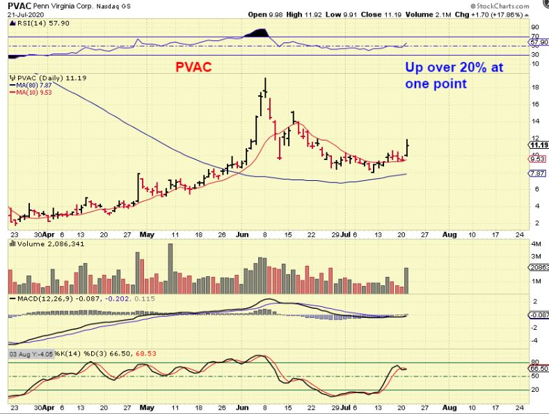 PVAC closed up 18%, but was well up over 20% Midday. That is how these can move, so we are going to discuss this sector as a buy & hold (Swing trades) for additional gains. Many of us made Great %-Gains on that first leg up out of the March lows.
