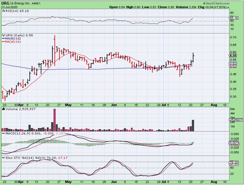 URG has now joined the run, so this is still low risk with support right under price. We saw a shake out and now it should be moving higher over time.