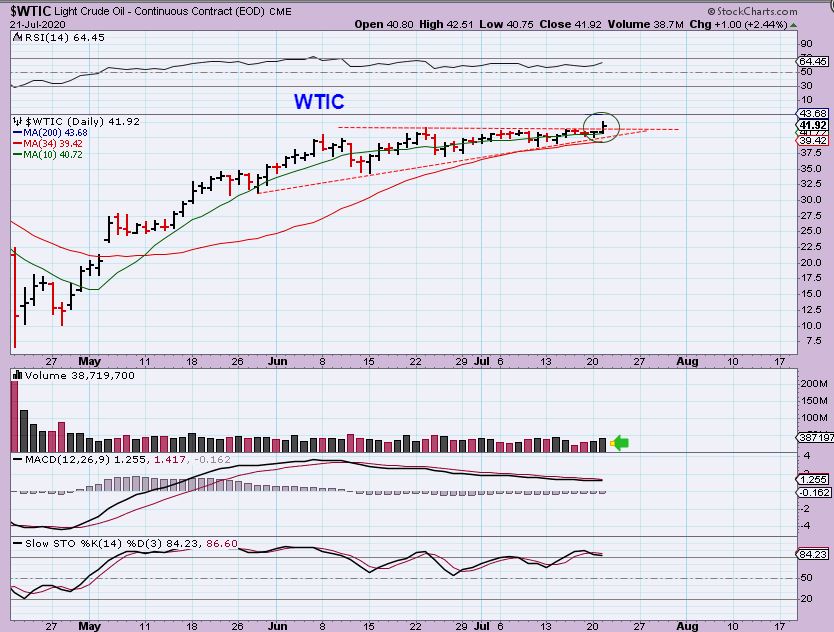 YESTERDAY I WROTE:  WTIC  remains the same, a tight consolidation. This is so tight that it could break higher today or tomorrow ( Oil inventory report day).   HAVE YOU BEEN WATCHING THE OIL/ENERGY STOCKS, AS MENTIONED ?