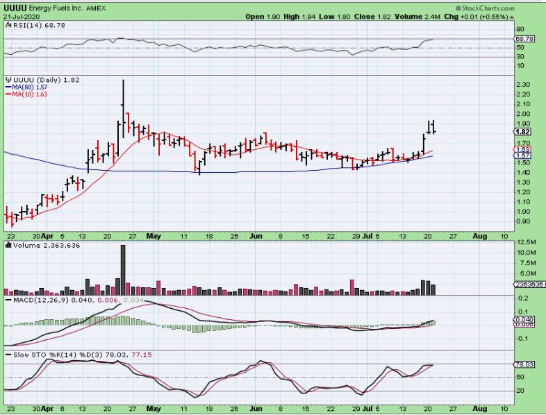 I have also discussed Uranium Stocks lately, breaking from a recent consolidation that followed a strong run out of the lows.  We discussed  UUUU, URG, UEC, CCJ, NXE, etc.