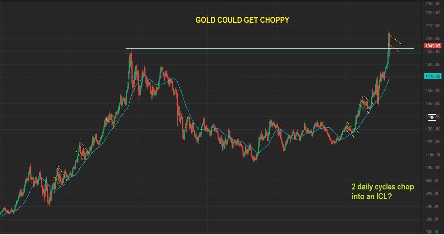 SILVER DAILY  – There is nothing that says that Silver can’t break to new highs and then start to drop into the next dcl  ( And eventually the ICL). Silver did seem heavy last week though.