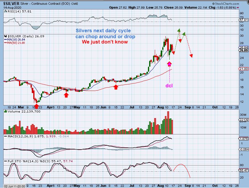 SILVER DAILY  – SO if we chop around in this daily cycle, you could get a sideways chop on the daily like this, or…