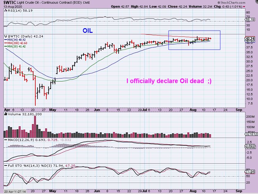 WTIC  – I have been waiting for a break out above the 200sma.  Oil has flat-lined, so I’m declaring it dead 🙂  Kidding aside, Oil needs to break out ( Up or Down) very soon. I do expect a pop higher, but no catalyst has pushed it forward yet.