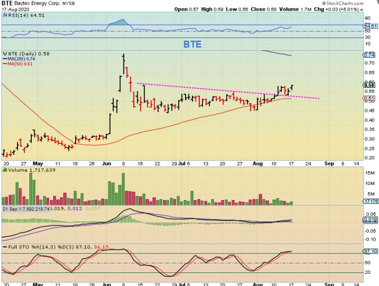 BTE -As you can see , some stocks like BTE are acting correctly.