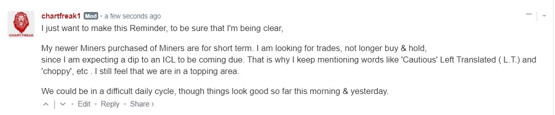 With a dcl in place late in an Intermediate Cycle, I usually just look at it with the idea that we now have 2 weeks to see how it will do. Why? 2 weeks is 10 trading days and often a weak L.T. Daily Cycle will peak around that time. If it just moves higher & breaks to new highs, it can be held on to until it shows signs of weakness. We all know that an ICL often comes roughly 6 – 7 months from the last one ( March), so it makes sense to be a bit more cautious, but a trade out of a dcl is usually reliable. That DCL is The Low, so it should not be soon be broken for a while. We have time to see how things unfold, choppy or rally? Along with that is the reminder that individual Miners can act on their own merit, so they can outperform Gold, Silver, or GDX.