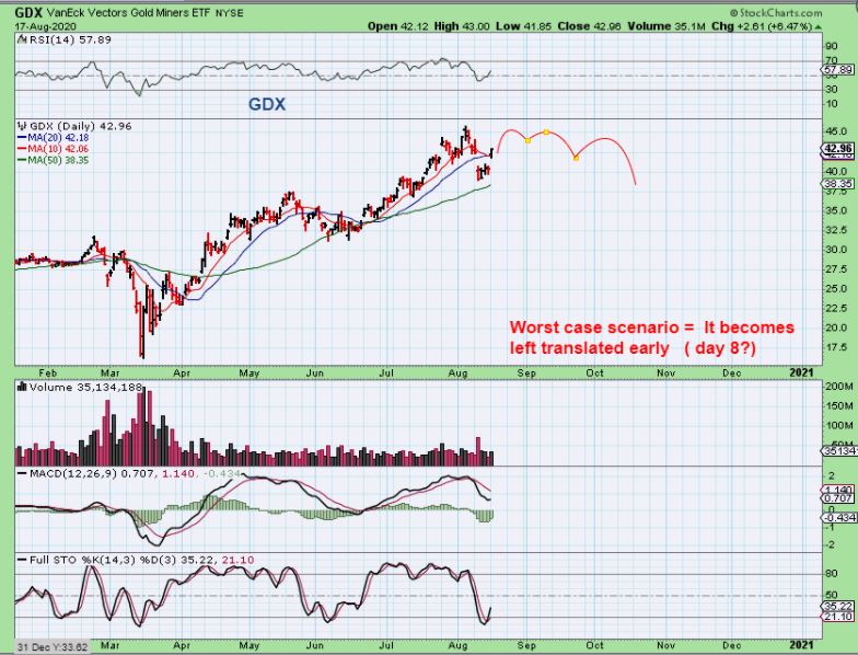 GDX #2 – So if this ends up being a weaker daily cycle, you would likely see a lot of chop and these can become Left Translated, topping by day 8-12 or so. It could look like this as a ‘weaker case scenario’…