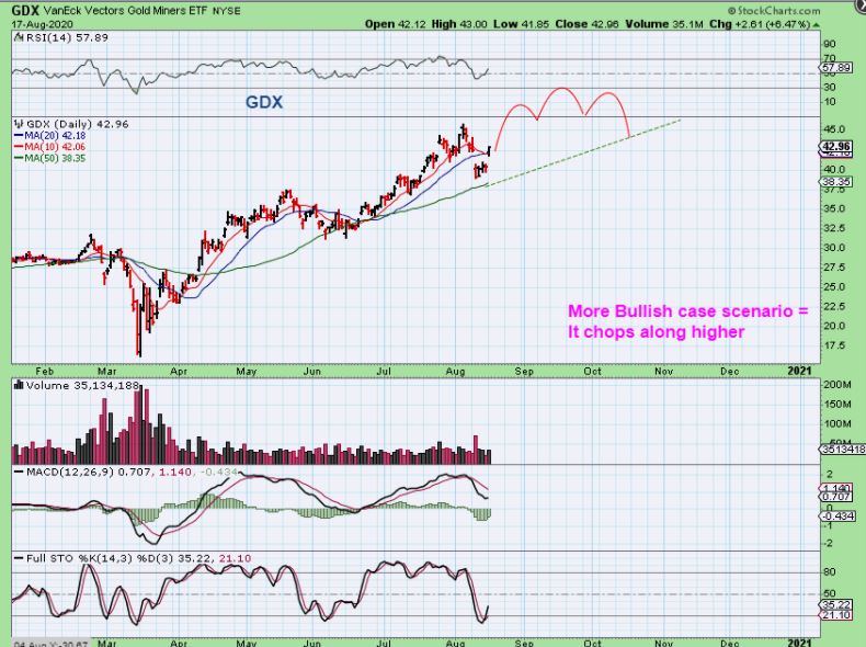 GDX #4: LEFT SIDE OF THE CHART – And then I have to include that reminder that we just need to stay alert. We saw a good 6-7 day rally in February peak & roll over. Followed by another 5 day run higher that rolled over too. We try to buy near the lows (dcl), use a mental stop, and keep an eye on things as it moves higher. And individual Miners ca always do their own thing.