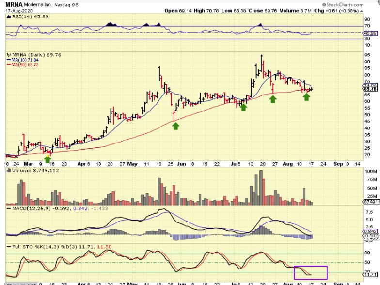MRNA also landed on the 50 sma several times before running higher, and it is there now too. It is very oversold.