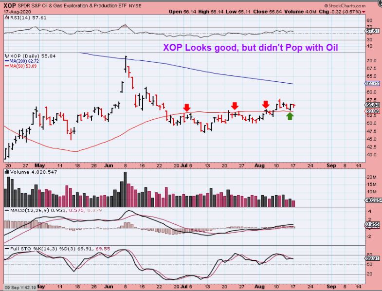 XOP – I looked up XOP & XLE and they didn’t push higher, so lets see what happens if this Break by oil holds for another day. Maybe these will follow. This is not bad, XOP is above the 50sma, I’m just surprised that it didn’t react immediately.