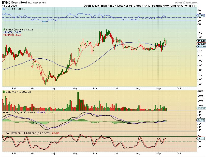 BYND was $130 at the 50 sma, and last week it was at $143 .