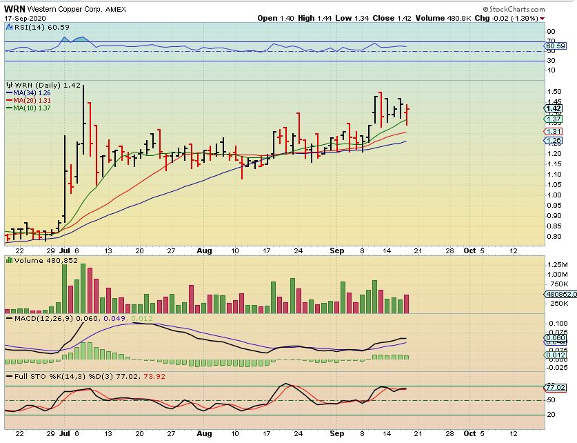 I still think that WRN is a similar flat pan-like consolidation. If the Markets or Copper give it a chance, it can break out and run too, so I posted it as a Buy & Hold at the 34 sma ( or put on a watch list & Buy the break out to new highs).
