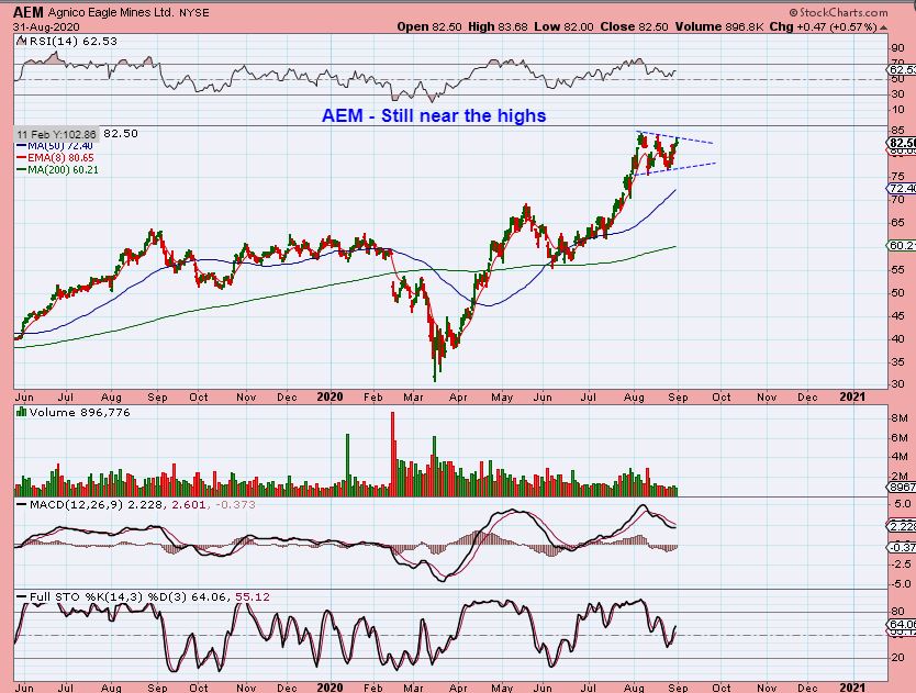 Some have not pulled back all that much.  CDE did drop $1.50/share,  but now appears to be forming a high bull flag at this time. It still may drop further, but I’d agree that it is holding up well.
