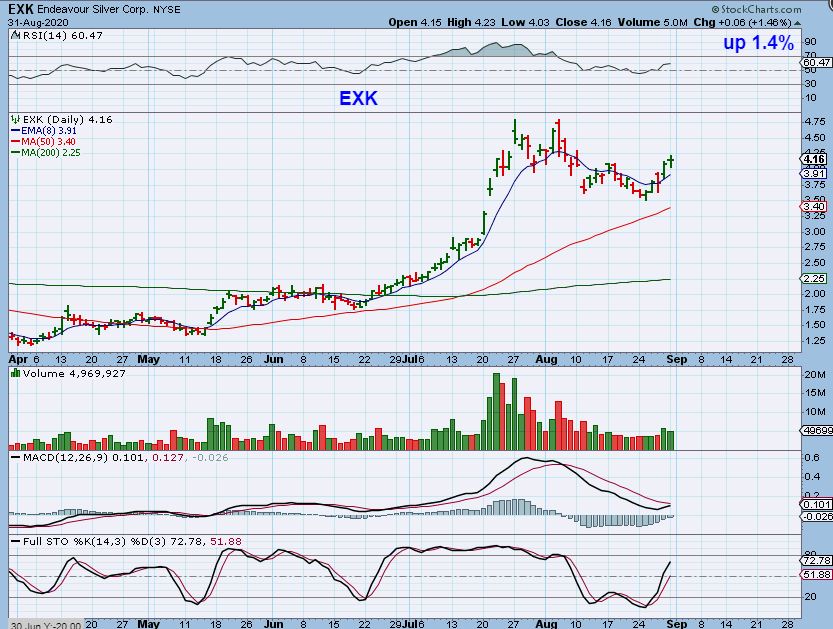 EXK  – I see the same thing here with EXK.  So we had Silver itself hold up nicely last week, but these Silver miners sold off quite a bit. Just an observation, but it seems noteworthy. And as you can see,  we have had a sell off Since I sold my Miners.