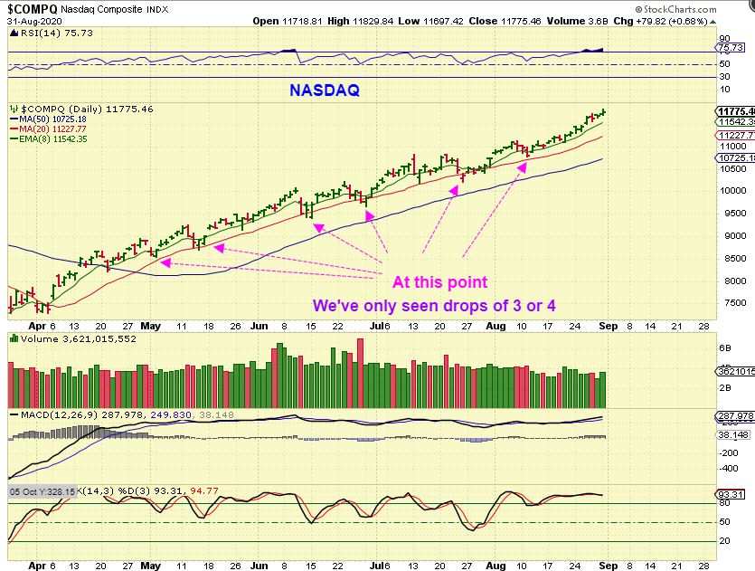 NASDAQ  And the NASDAQ has only seen drops that last a couple to a few days.