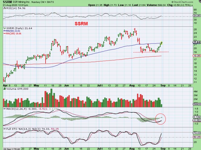 SSRM  Did crash down with Silver and then tried to put in a higher low. Let me show you something about some of these Miners, since I got an email asking why…. ” .. the Miners aren’t selling off?”  …
