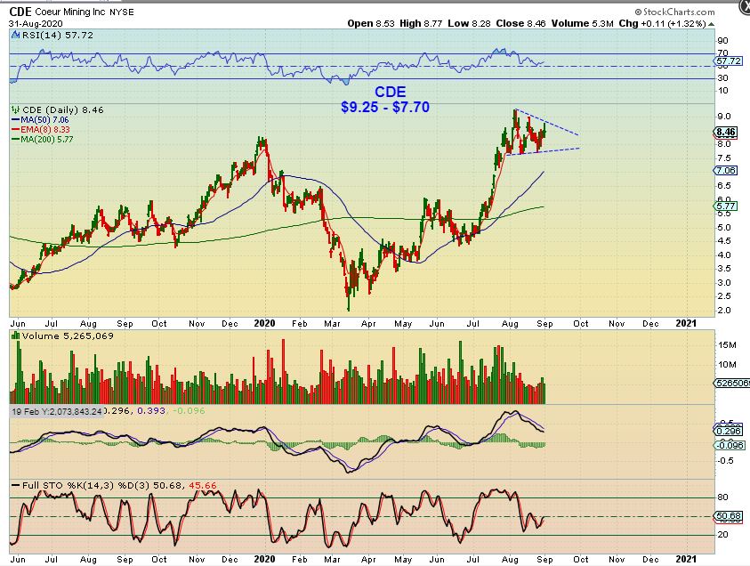 Some have not pulled back all that much.  CDE did drop $1.50/share,  but now appears to be forming a high bull flag at this time. It still may drop further, but I’d agree that it is holding up well.