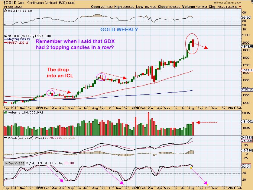 SILVER broke the downtrend and spent 22 days chopping higher out of that low (first arrow), and then crashed one more time to the real ICL. This is just a reminder of how quickly things can change when an ICL comes around. 22 days bullish and then a plunge. This drop was $18.50 to $16.50 & then it ran sharply higher.