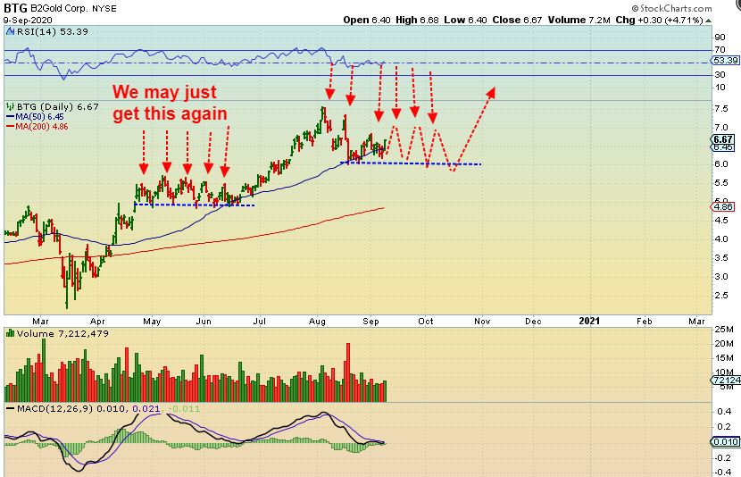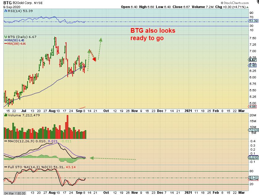 Notice that BTG dropped from $7.50 to $6, and now after chopping around consolidating gains, it may look ready to run higher, right? Yes, so it can be bought as a ‘trade’ & maybe even hold on for more. You may use a stop at the 50sma too, but let me show you something…