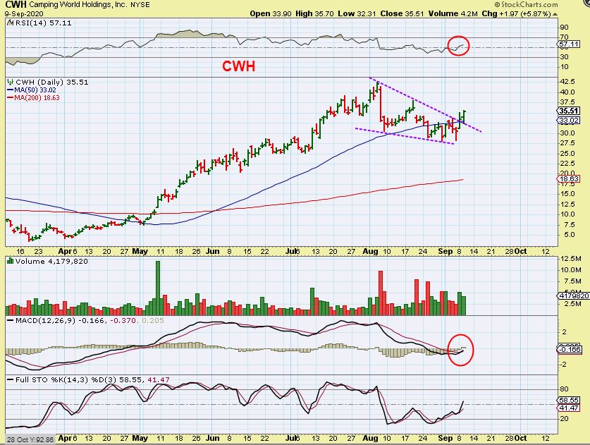 CWH was a buy in yesterdays report. After dropping a little below the closing price, it closed up 6% again, so this is having follow through and can still be recommended as a buy .
