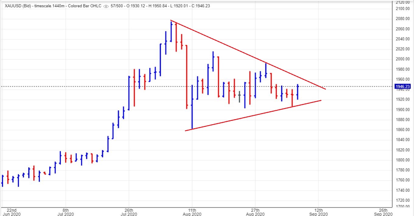 SO FAR GOLD IS A GIANT TRIANGLE, and this has caused Gold , Silver, and the Miners to be choppy.