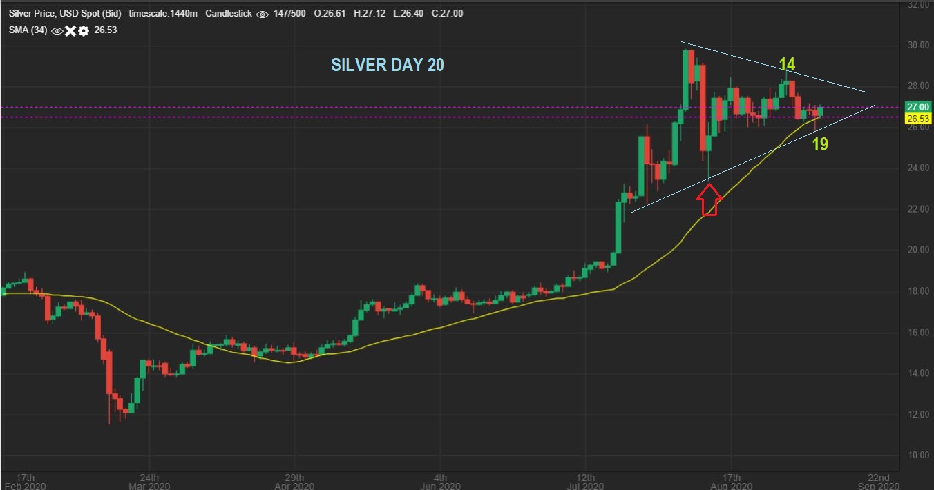 SILVER is choppy on day 20 also . Since we are coming due for an ICL ( we are 6 months from the last one) , I want to show you an example of a past strong looking set up while in the timing for an ICL too…